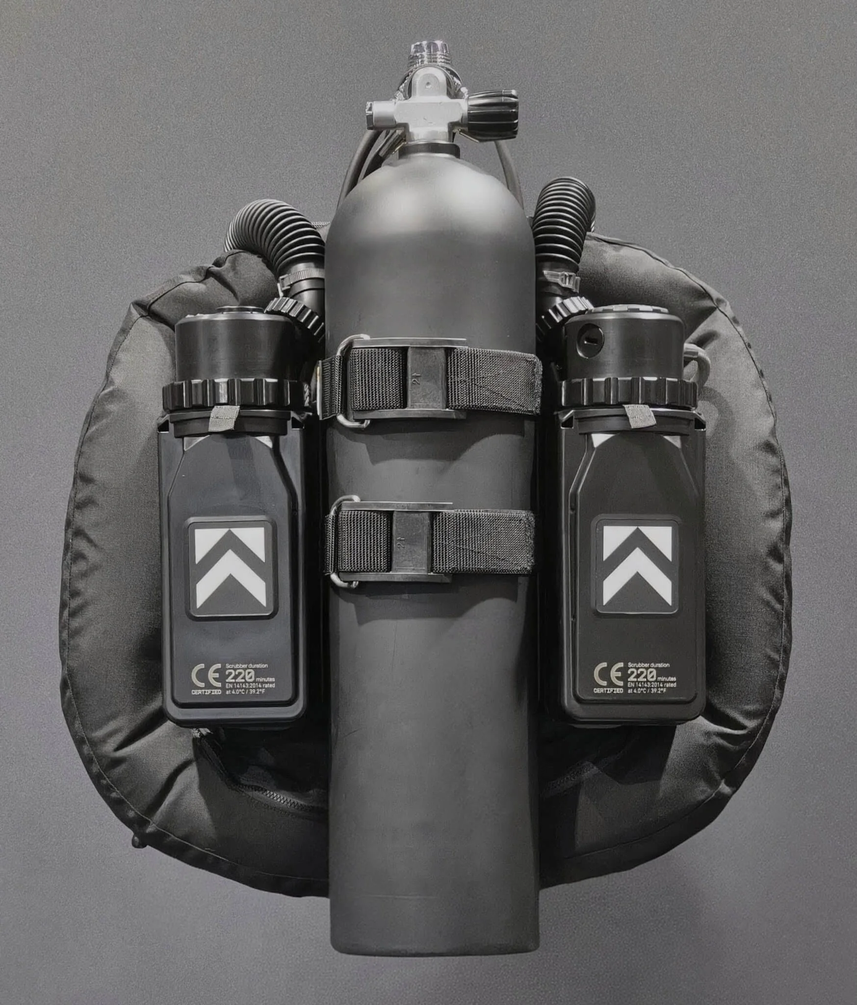 Note, the unit has been CE certified in single tank backmount configuration, because the mannequin in sidemount configuration did not fit the test chamber!