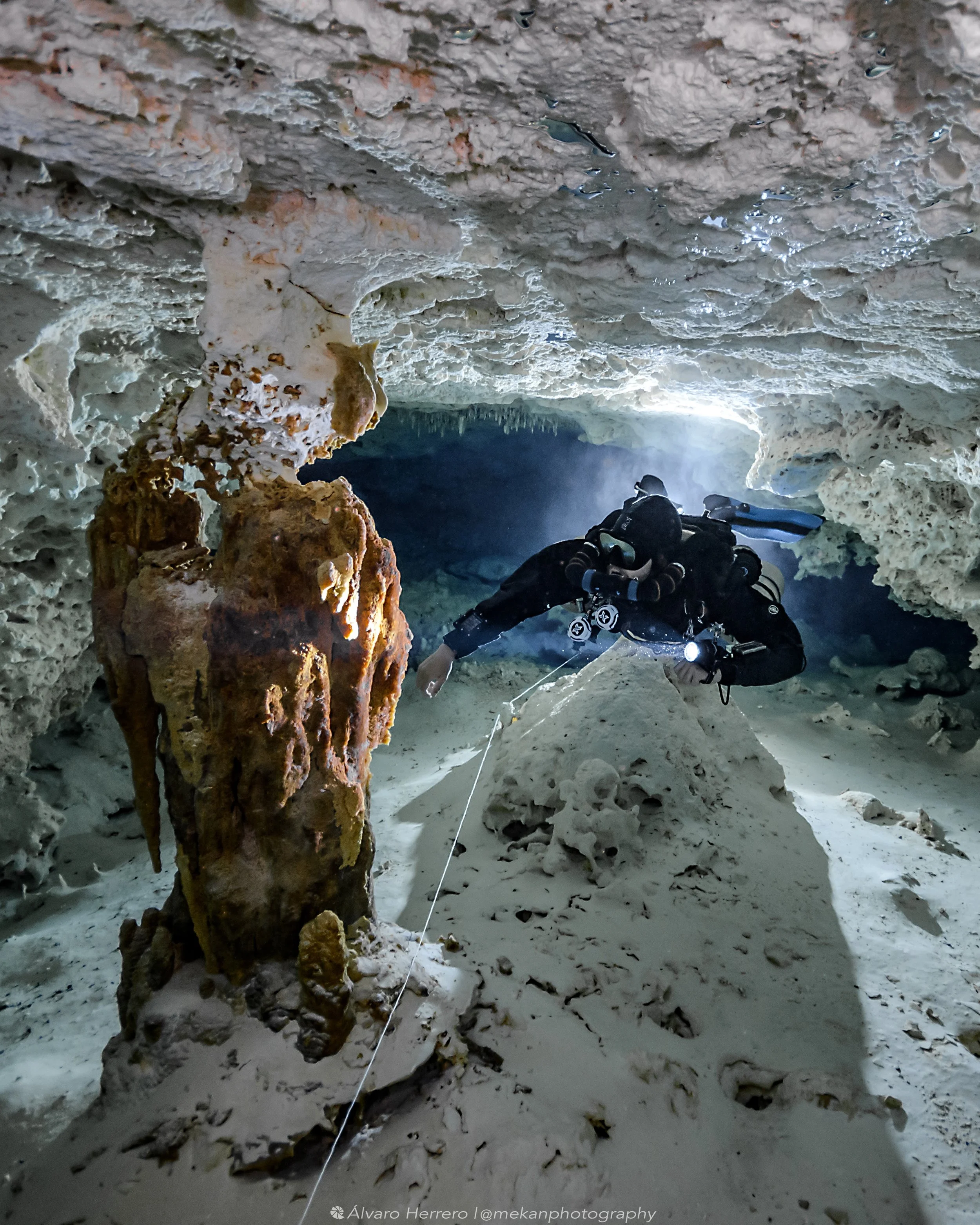 The first time you swim 90 minutes into a cave, and have about the same time to swim back, can hit you in different ways. It might be the work of moving through the water all that time is exhausting, or the chafing of a fin giving you a blister. It could be that feeling of ‘wow I am more than an hour away from breathable air if my equipment fails’. The first time I did a 70 minute swim down the mainline in Nohoch Na Chich I wasn’t able to recognise the cave on the way back out, I had mentally exhausted myself and questioned whether I was on the correct line (I was, everything just looked different on the way back until I saw an arrow I recognised). Having done A LOT of open circuit cave diving (and continuing to do so), I also know very well the value of gas. I know that at a certain depth my gauge will decrease by x over ten minutes. Every open circuit cave dive I do, I am verifying how much gas I use over time at depth. For rebreather cave diving, this means I know very well what to expect if I should have to bailout (and having done so for different reasons on different occasions I know my bailout gas planning works).
